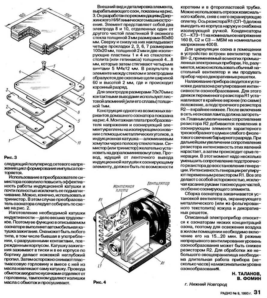 Домашний озонатор. Документ взят с официального сайта журнала «Радио» (№8 за 1993 год).